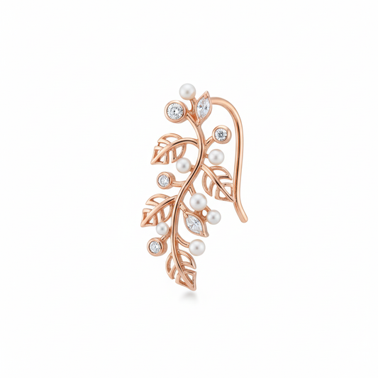 This enchanting ear climber features a delicate botanical design, resembling a graceful vine or branch....